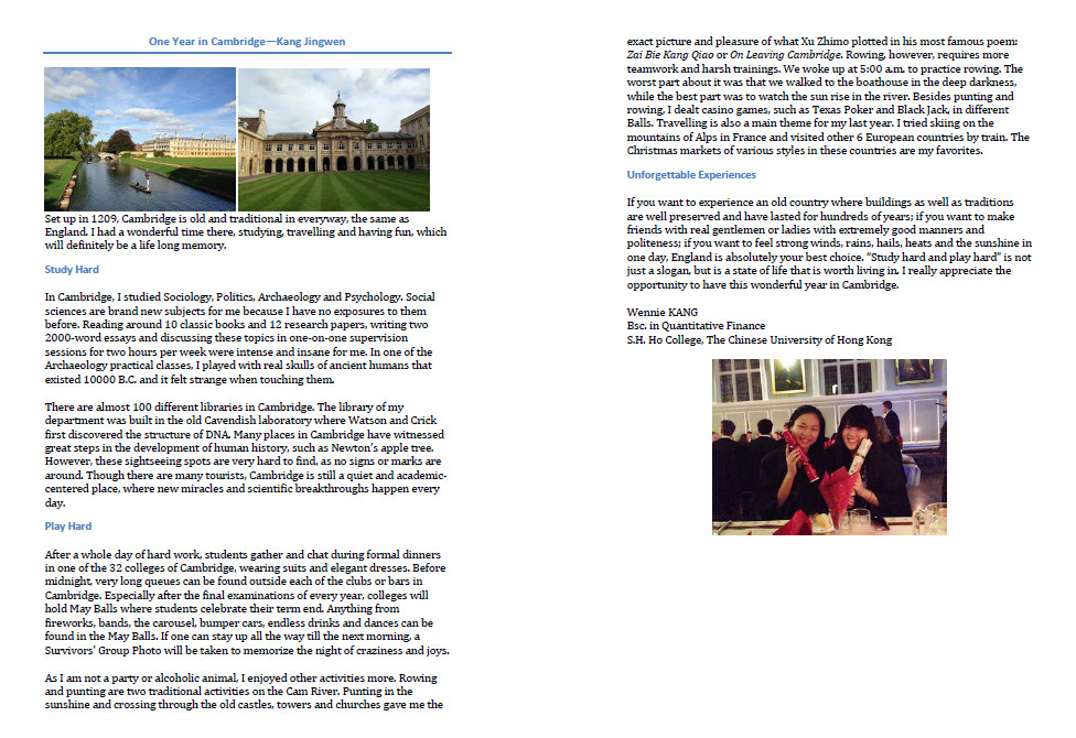 Exchanged from S.H. Ho College to Emmanuel College, The University of Cambridge